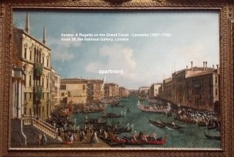 - dining room: original furniture, 3 windows with Grand Canal view, table and chairs, original Murano glass