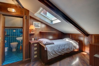 - stylish double bedroom #1: a double bed (not twins), 2 windows, 2 bedside tables, wardrobe, chest of drawers, an armchair