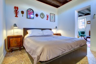 - 67 sqm about, self-catering apartment - wooden-beam ceiling, marble floors, original Terrazzo Veneziano marble flooring, 5 windows with view on Campo Ruga