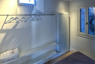 - stylish single bedroom#2: a double bed (not twins), a window, 2 bedside tables, clothes rack, original Terrazzo Veneziano marble flooring