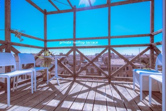 stylish apartment for groups recently-restored, spacious super apartment with 2 autonomous units, 5 double beds, 3 baths, air-cond, Wifi. Private rooftop terrace for 4 people max