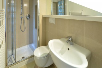 - stylish bathroom #1: a window, shower, washbasin with mirror, bidet, WC