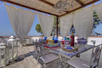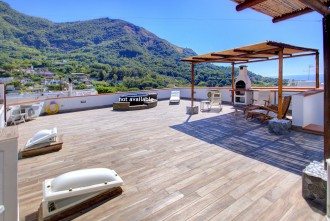- private solarium/terrace, 2 gazebos with seating for breakfast and lunch, BBQ, sunbath furniture and shower, a great rooftop-sea-mountain view