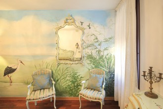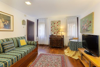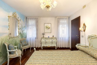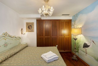 - double bedroom#2: 2 windows with main road view, a double bed (not twins), a painting on the wall, original Murano glass, 2 armchairs, chest of drawers